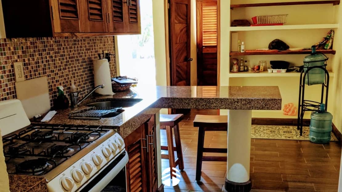 Behind the front gates, you’ll find parking space and easy access to the attached upstairs apartment. This one-bedroom suite with its own balcony overlooking the pool is perfect for guests or as an income-generating rental.