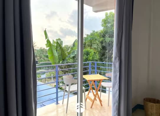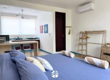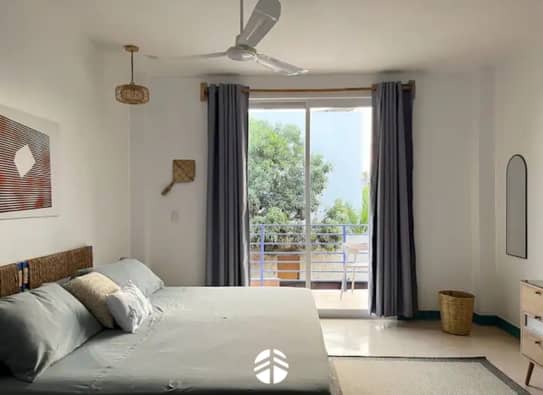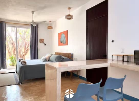 Extras: Cocina, Área de trabajo, Acceso compartido a la playa, Wifi, cámaras, vista al patio y a la ciudad, AC, Patio o balcón privado