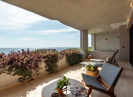 Extras: A solo 20mt de la playa, Cama King size, Terraza privada con vista al mar, TV, WiFi, jardín, bar, cocina equipada