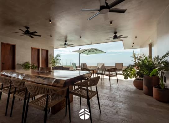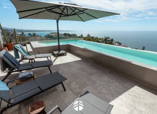 Extras: Totalmente equipado, Cocineta, baño completo, jardín, Pergola con vista al mar y área de hamacas