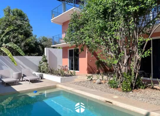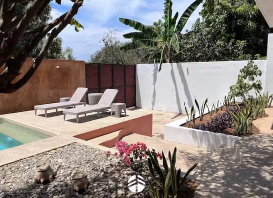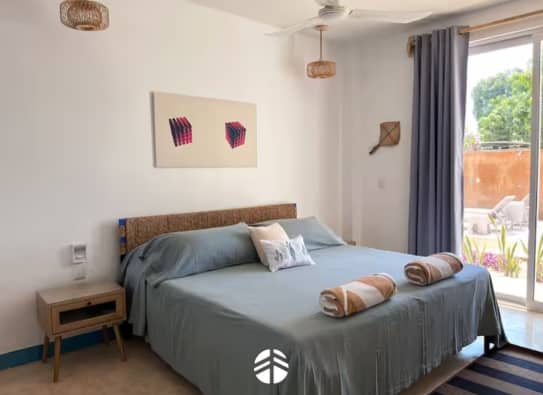 Extras: A unos pasos de playa Zicatela, totalmente equipado para 4 personas con 2 camas individuales y una King Size, Cocina equipada, 2 Baños y medio., 2 hab. (una de ellas con A/C), Área de trabajo, jardín, internet, TV y Netflix